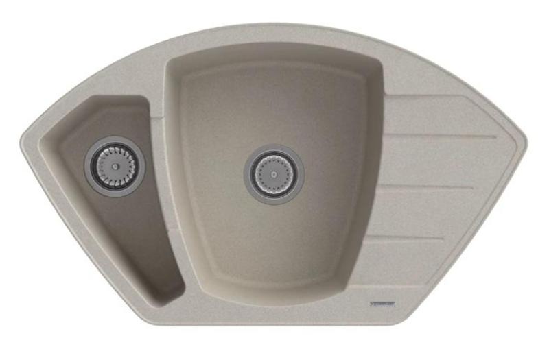 Graniteland Monte Granitový béžový rohový drez na montáž 901x538mm s RVS zátkou 1208971414