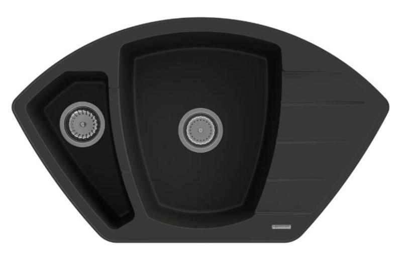 Graniteland Monte Granitový čierny rohový drez na montáž 901x538mm s RVS zástrčkou 1208971413