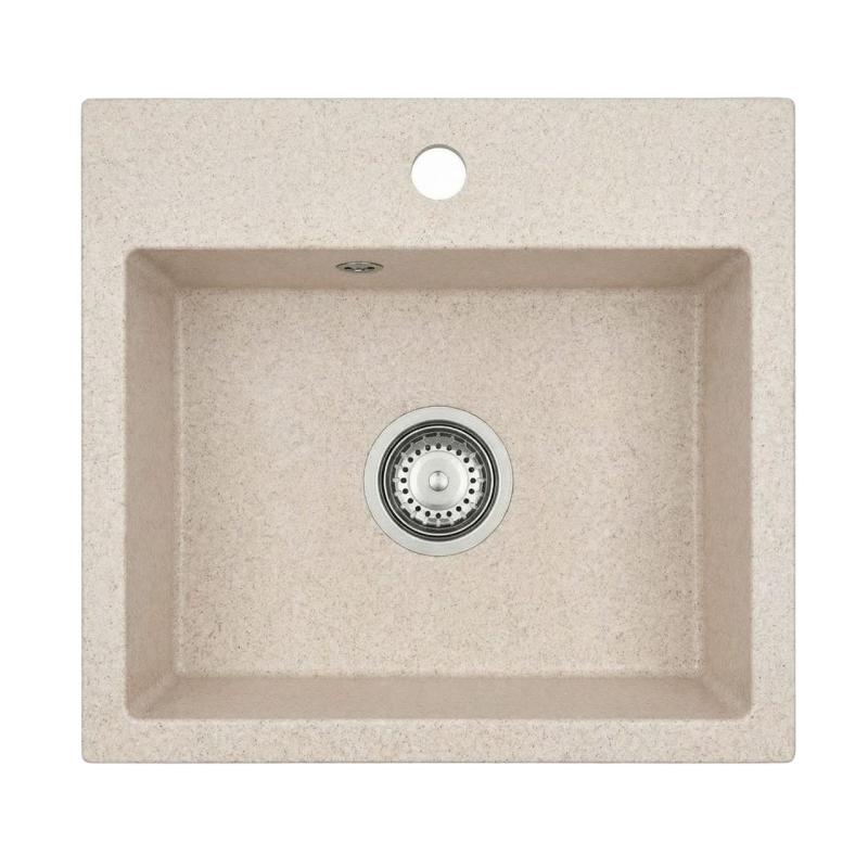 Graniteland Nera Granitový drez 45x42 cm Bežový Nadstavba s otvorom pre batériu a nerezovým uzáverom 1208971434