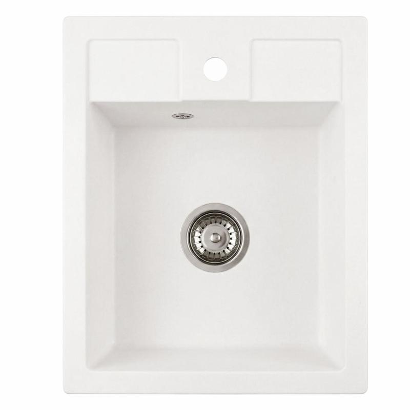 Graniteland Prest Granite white sink Tapwing with faucet hole bank surface mounted 400x500mm with Stainless Steel Plug 1208971424