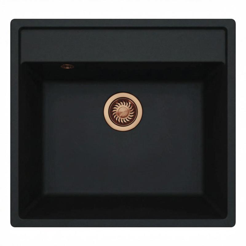GraniteMy Bremen Granitový Drez 53x50 cm Čierny – Na dosku, Pod dosku a V rovine s Otvorom pre Kuchynskú Batériu a Medeným Korkom 1208969970