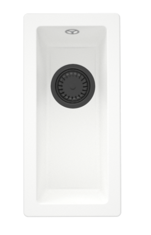 GraniteMy Universal Malý Biely Granitový Drez 17x40 cm biely nadstavbový, podstavbový a rovnoúrovňový s gun metal zátkou - 1208967897