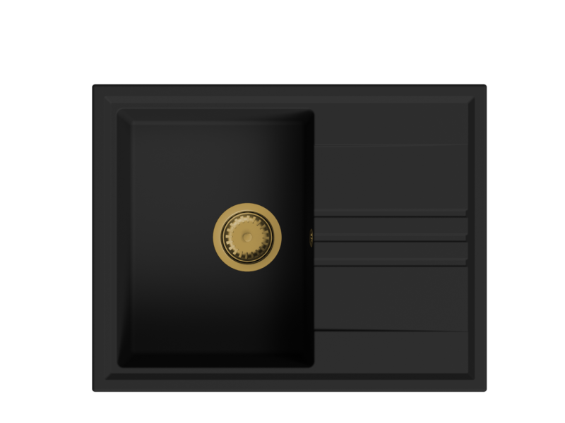 Granitový Vesi nástavbový čierny drez 64x50cm so zlatým korkom a odkvapkávačom 1208967296