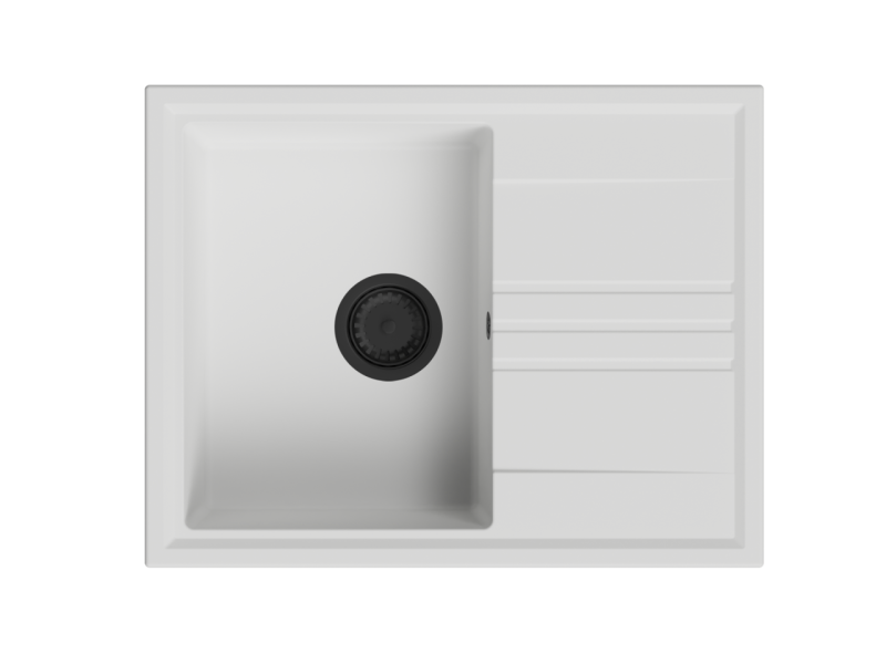 GraniteMy Vesi granitový nástavbový biely umývadlo 64x50cm s odkvapkávačom otočným s čiernou zátkou 1208967299