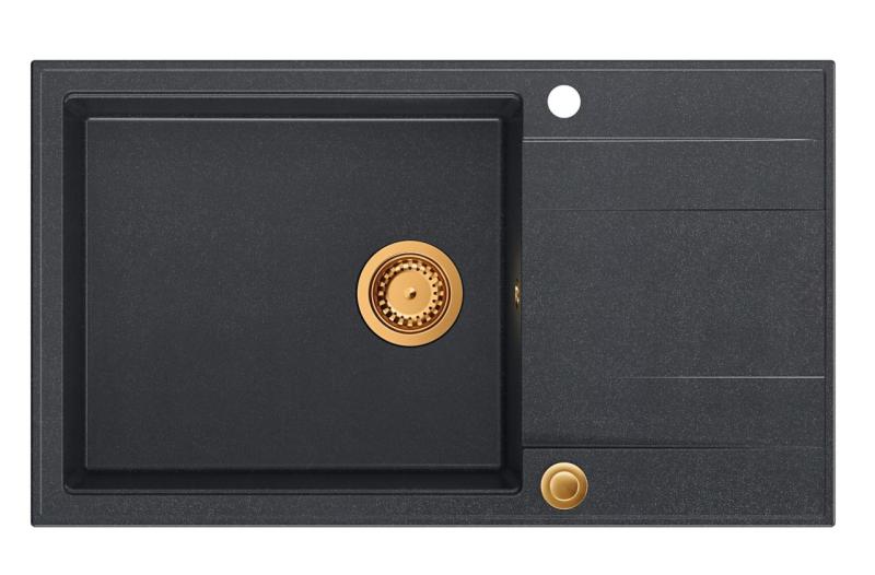 Quadri Luton antracitový veľký nadstavbový drez s odkvapkávacou plochou, obojstranný, 86x50 cm, s medenou zátkou 1208967335