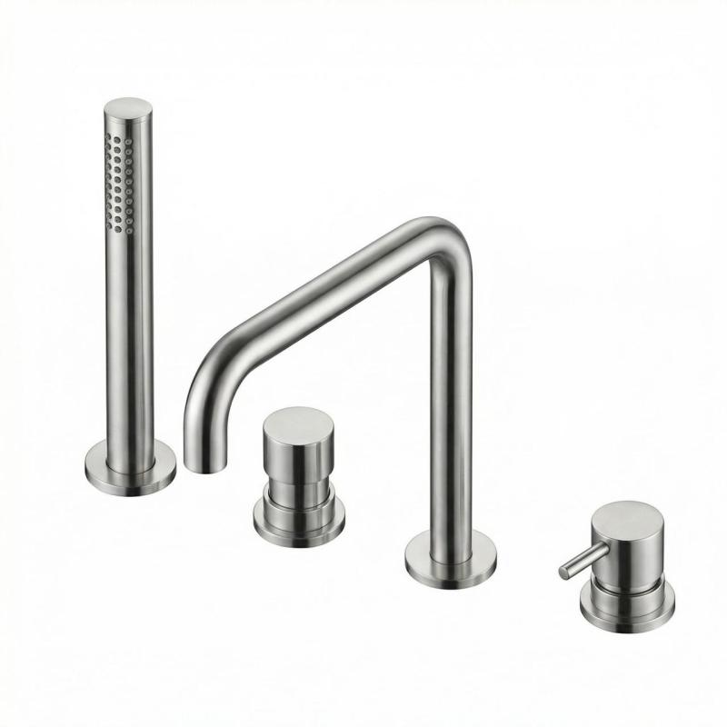 Waterevolution Flow 4-otvorová vaňová batéria na montáž na okraj vane, úplne z nehrdzavejúcej ocele H T138HIE